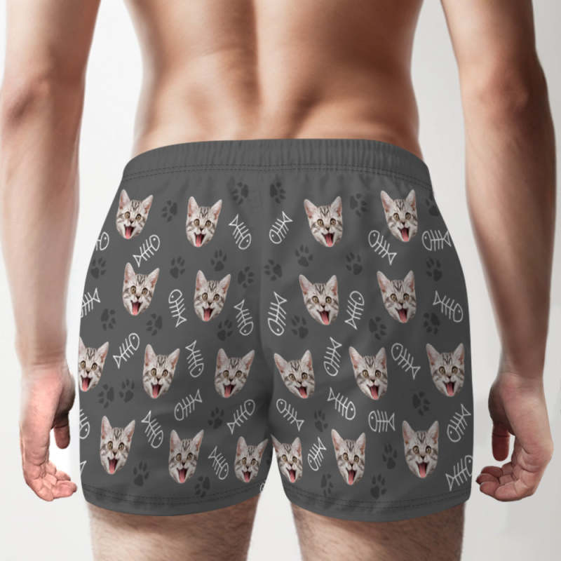 Custom Cat Face Multicolor Boxer Shorts Personalized Casual Underwear Gift for Him