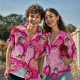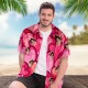 Custom Couple Hawaiian Pink Heart Shirt Face Button-down Shirt Gifts For Couple