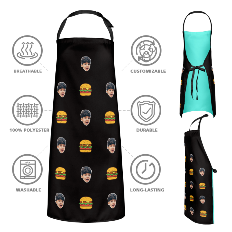 Get cookin' and keep your clothes good lookin' wearing our custom apron around the kitchen.