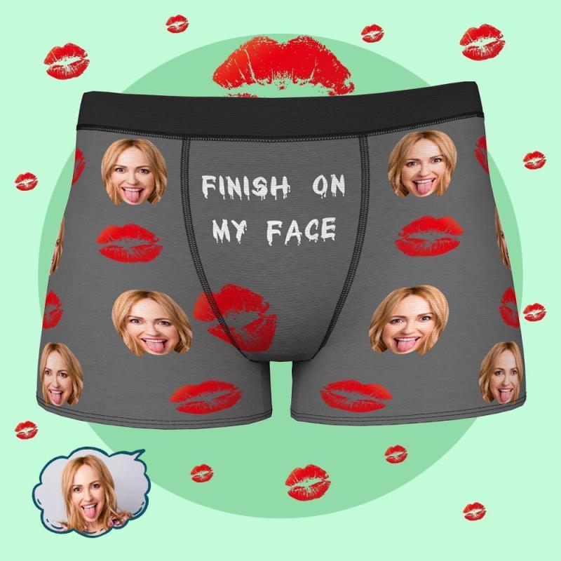 Custom Face Boxer FINISH ON MY FACE Personalize Photo Underwear for Men Gifts for Boyfriend