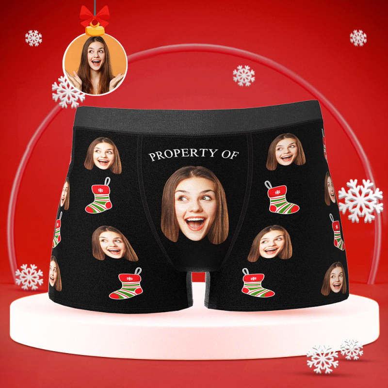Custom Face Boxers Briefs Men's Shorts With Girlfriend Photo Christmas Gifts - Property Of