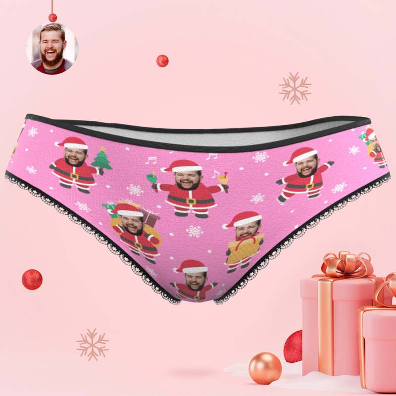 Custom Face Christmas Santa Pink Women's Panties Personalised Pink Christmas Gift