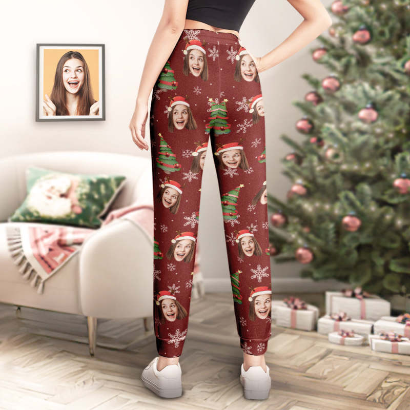 Custom Face Christmas Sweatpants Trousers Red Personalised Unisex Joggers Funny Christmas Gift