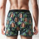 Custom Face Flowers and Leaves Design Boxer Shorts Personalized Waistband Casual Underwear for Him