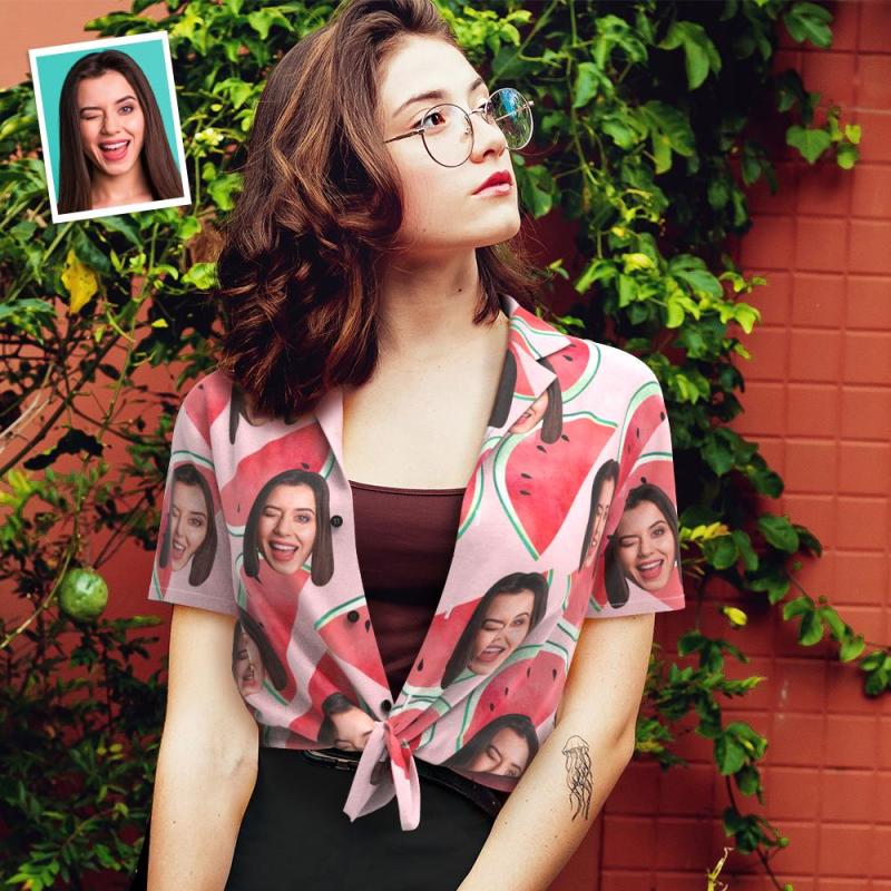 Custom Face Hawaiian Shirt for Women Personalised Women's Photo Hawaiian Shirt Gift for Her - Watermelon