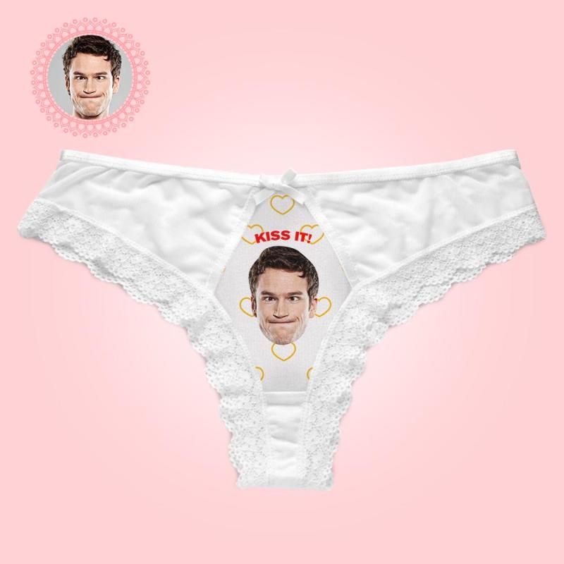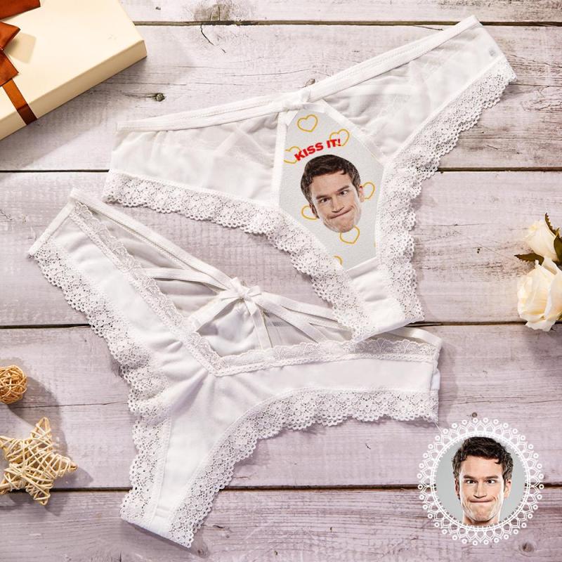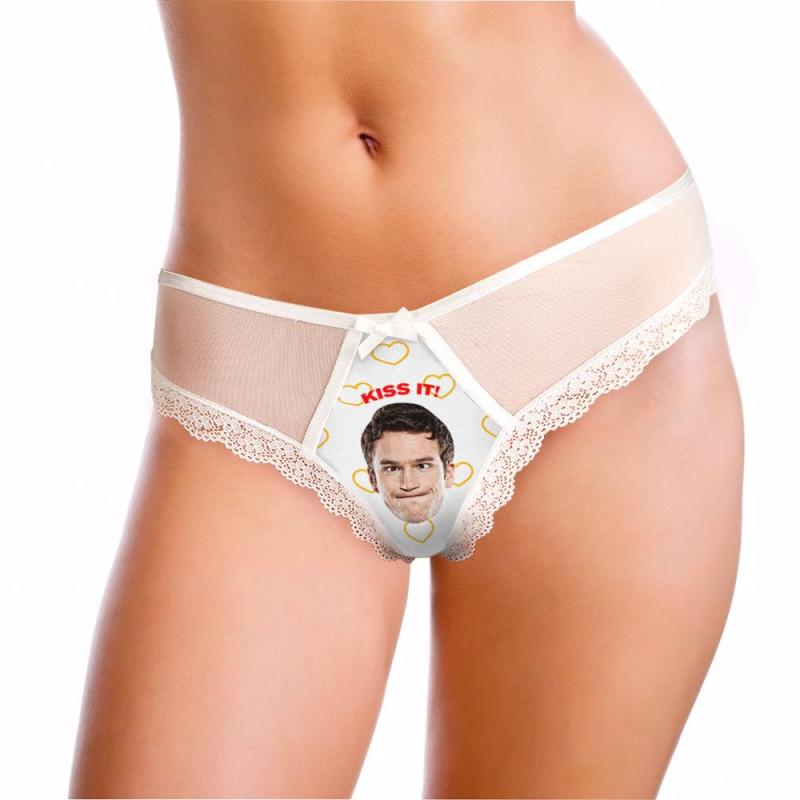Custom Lace Thong Sexy Lace Panties Funny Gift with Boyfriend Face -KISS IT
