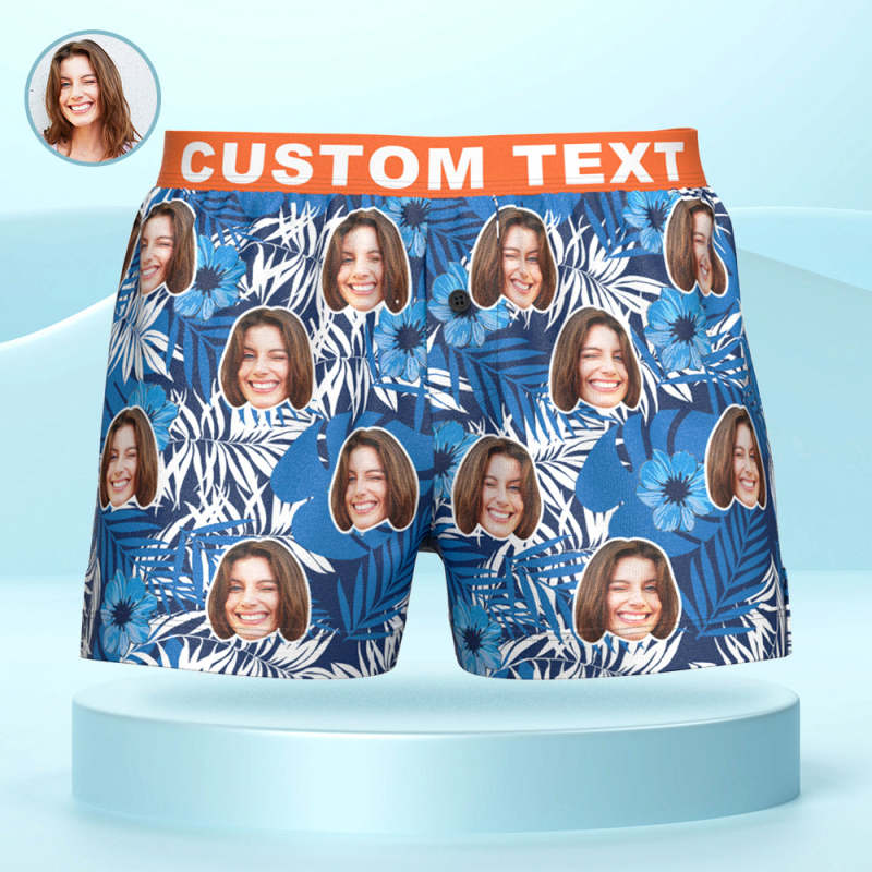 Custom Face Leaves and Flowers Print Boxer Shorts Personalized Waistband Casual Underwear for Him
