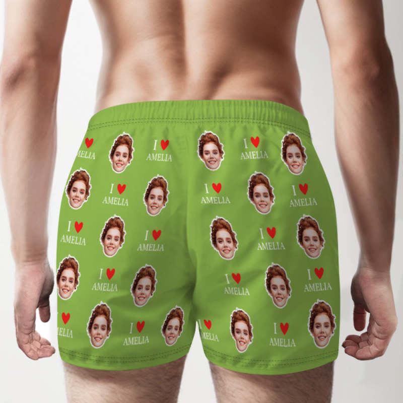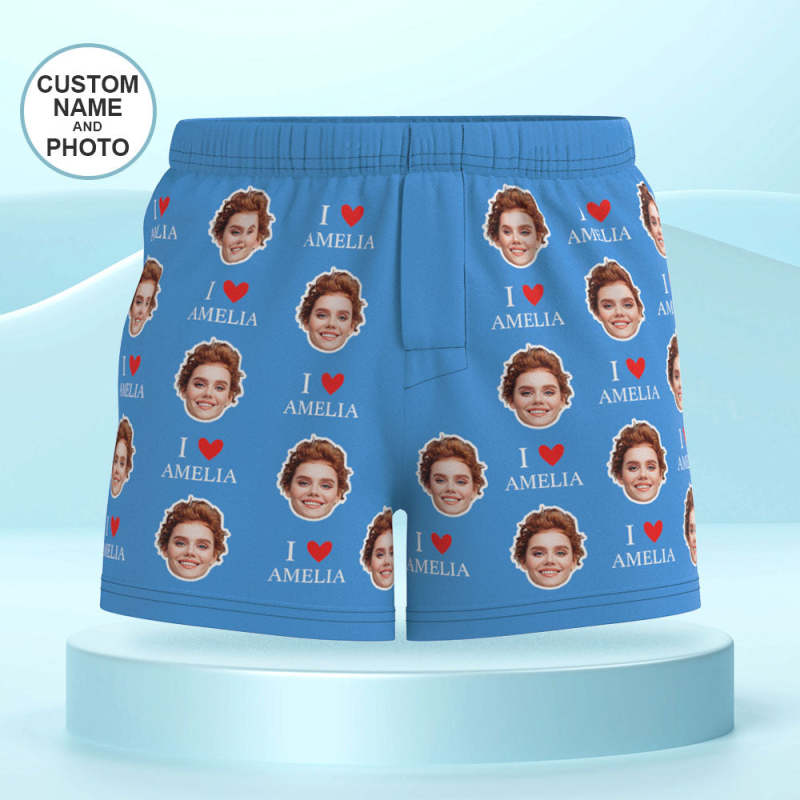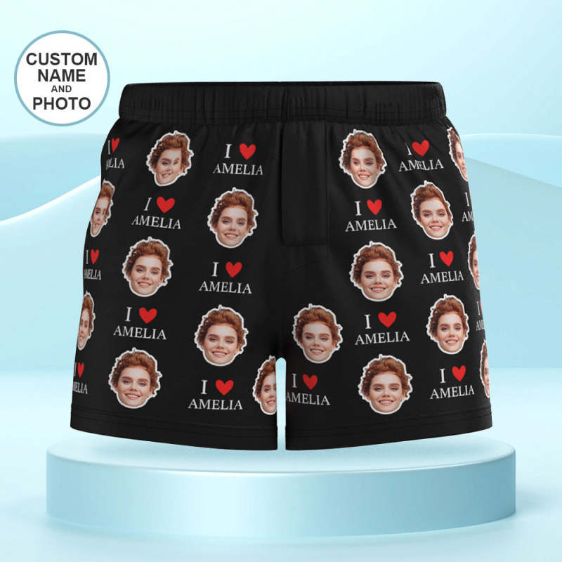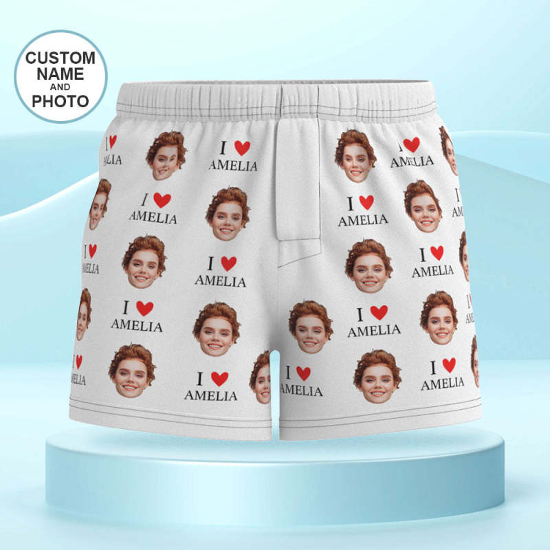 Custom Face Multicolor Boxer Shorts I Love You Personalized Photo Underwear Gift for Him