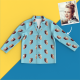 - Matching shirt with notched lapels; button front.