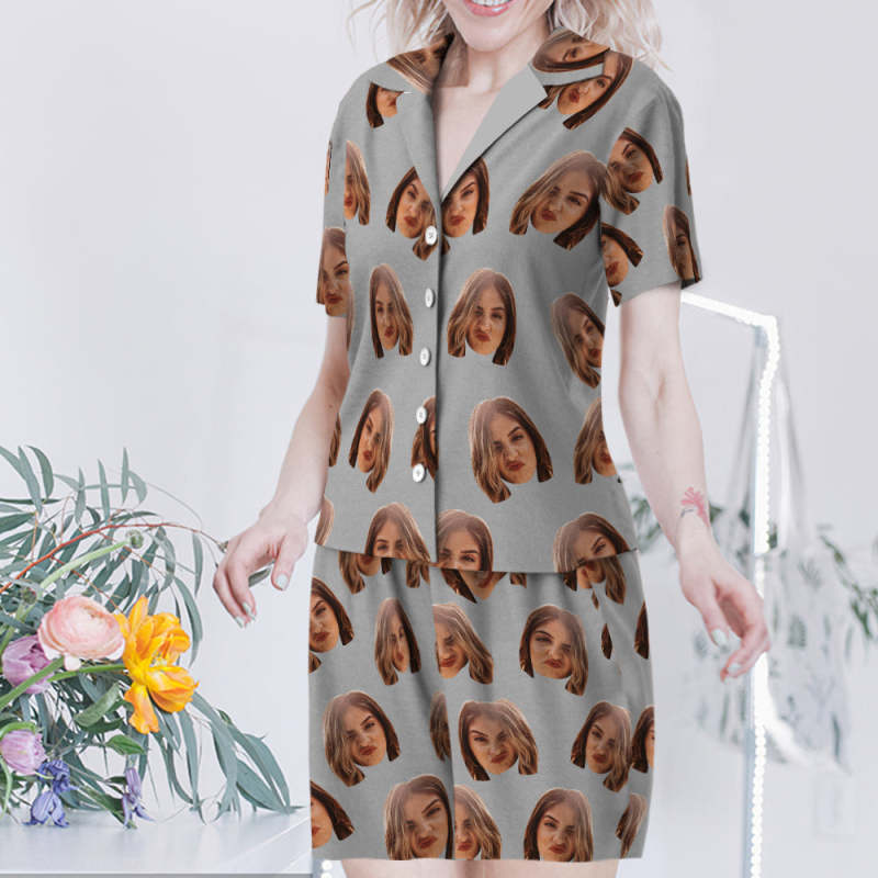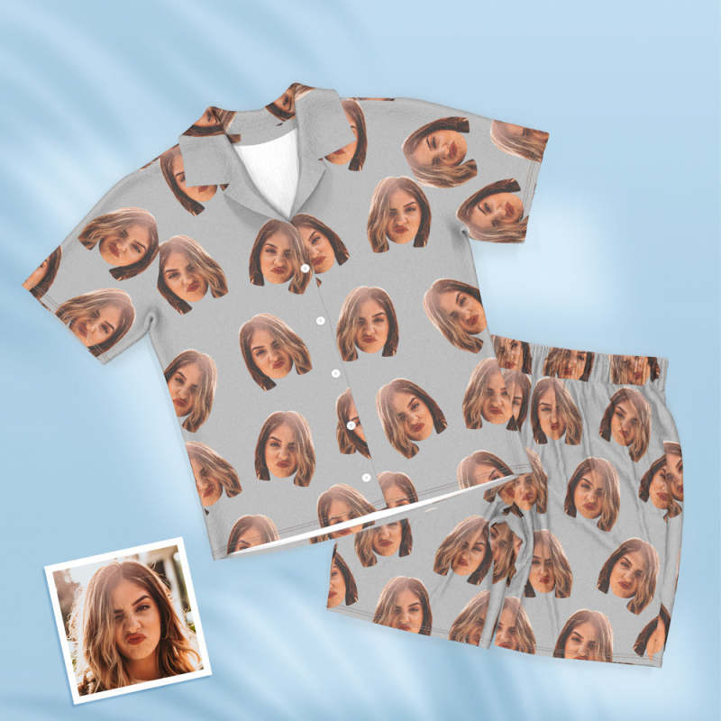 Custom Face Pajamas Softest Couple Pajamas Personalised Unisex Short Sleeved Shirt and Pants For Love