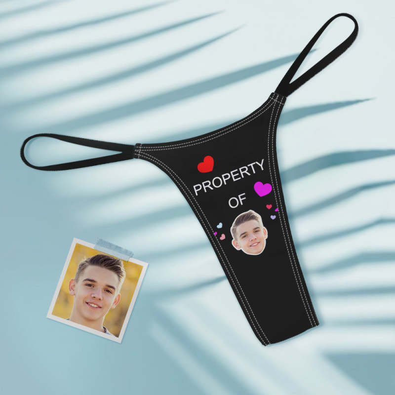 Custom Face Property of Hearts Women's Colorful Tanga Thong