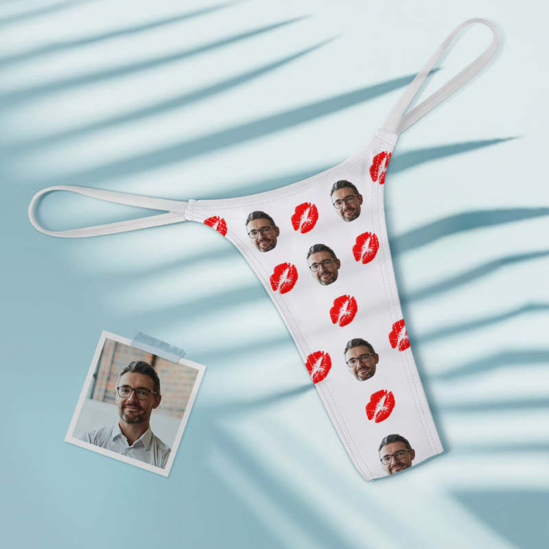 Custom Face Red Lips Women's Colorful Tanga Thong Kiss