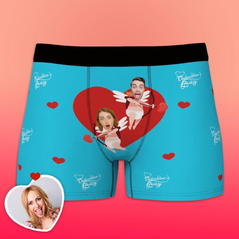 Custom Funny Face Cupid Love Heart Valentine's Day Men's Boxer