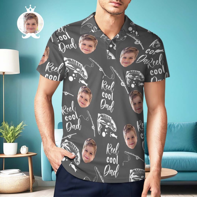 Custom Men's Polo Shirt Personalized Reel Cool Dad Kids Face Polo Shirt For Dad