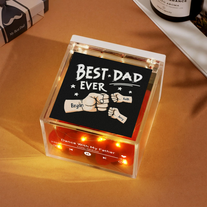 The Best Dad Ever Fist Bump Custom Mini Vinyl Record Player Automatic Music Player Personalized Gifr For Pops On Father's Day