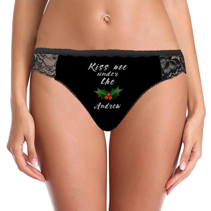 Custom Name Lace Panty Women Sexy Panties Kiss Me Under The Mistletoe