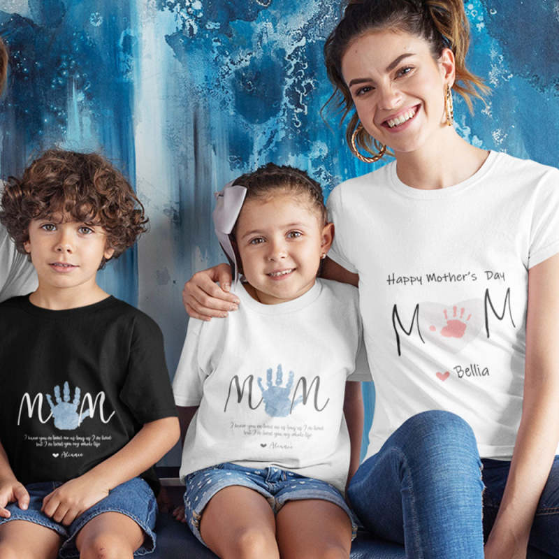 Custom Name T-shirt Handprint Matching Shirt Best Gift for Mother's Day