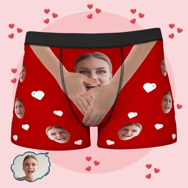 Personalised Funny Face Boxers Custom Photo Underwear Gift for Men Girl Face and Hug