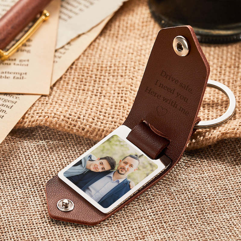 • You can personalize it any way you like: engrave any text or quote on the leather, add your favorite photo on the tag and write a message for your loved one on the back! Leather photo keychain for memory. Monogram date or name with ease.