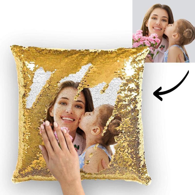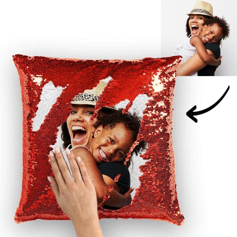 - Personalised photo pillow with magic sequins