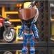 Stylish motorcycle helmet rider figure inspired by racing culture.